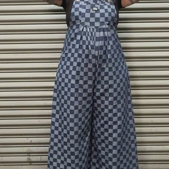 Easy, bold, and built for movement. The Checked In Jumpsuit is made from soft, comfortable denim featuring a classic checkerboard pattern and a relaxed, wide-leg silhouette. Designed with adjustable straps and functional side pockets, this piece brings punk attitude into an all-in-one outfit you can actually live in.